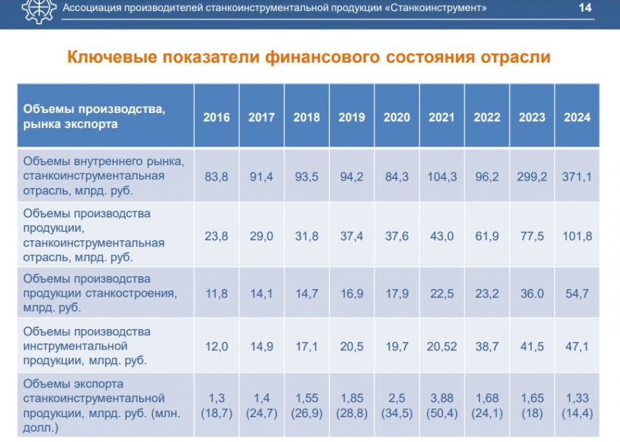 Объемы внутреннего рынка станкоинструментальной отрасли по итогам 2024 года составили 371,1 млрд рублей, для сравнения, в 2023 году показатель был равен 299,2 млрд рублей.