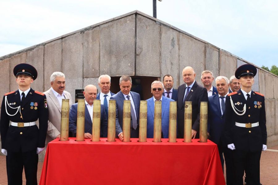 Гости прикоснулись к гильзам с землёй из городов-героев, которые 55 лет назад заложили у основания монумента.