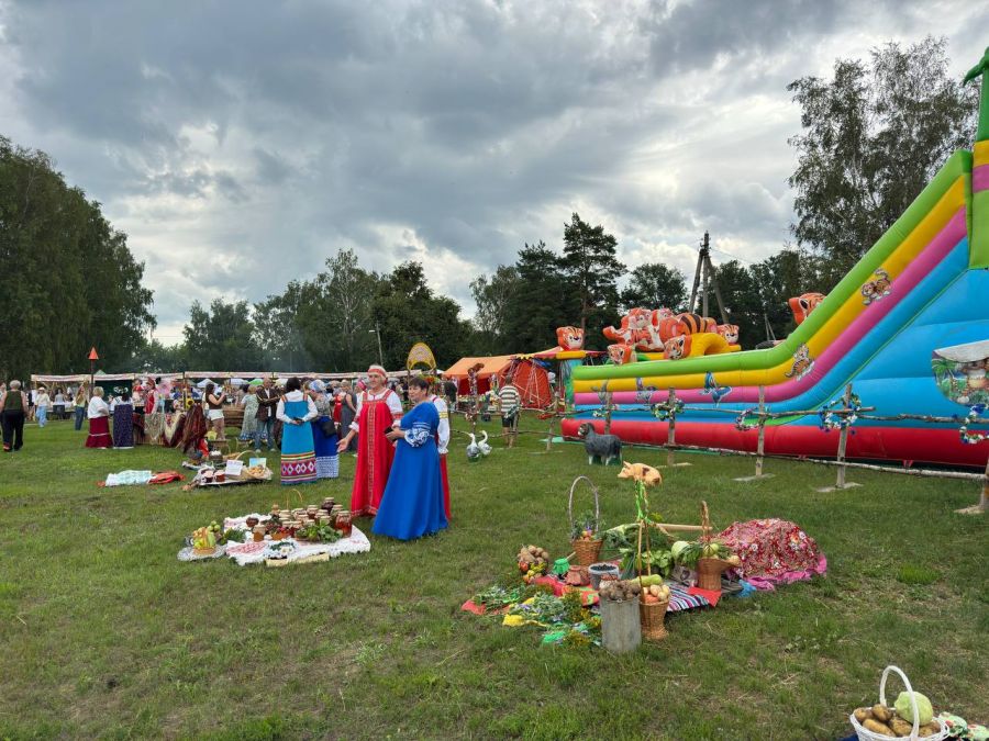 Утром в храме Спасо-Преображения Господня состоялся молебен, в 11:00 стартовали ярмарочные гуляния под открытым небом и концерт. Чтобы у гостей остались красивые фото на память, организаторы создали фотозоны – народную со стогами сена и дворянскую с каретой и тематическими костюмами.