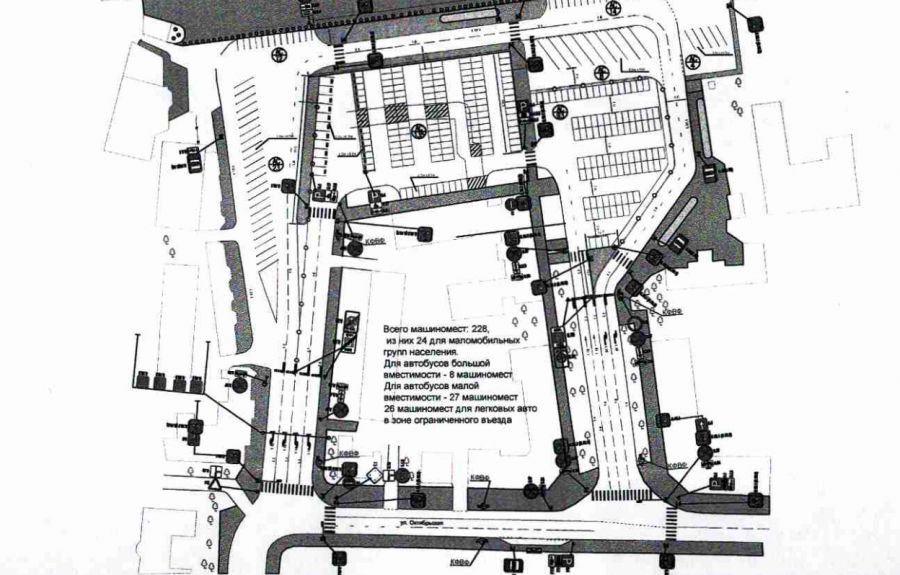 В центре планируется пространство на 228 машин. 24 места выделяется для инвалидов, для автобусов – 8, для маршруток – 27. 26 мест – «для легковых авто в зоне ограниченного въезда».