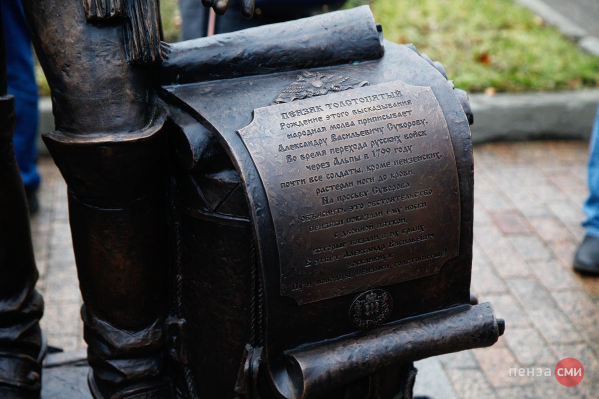 Выражение «пензяк толстопятый», если верить народной молве, появилось в конце XVIII века, во время легендарного перехода суворовских войск через Альпы. Прославленный полководец, которому традиционно приписывают отчасти простонародную манеру поведения, восхитился практической сметкой уроженцев сурского края, не страдавших от мозолей на натертых ногах, потому что надевали носки с двойной пяткой.