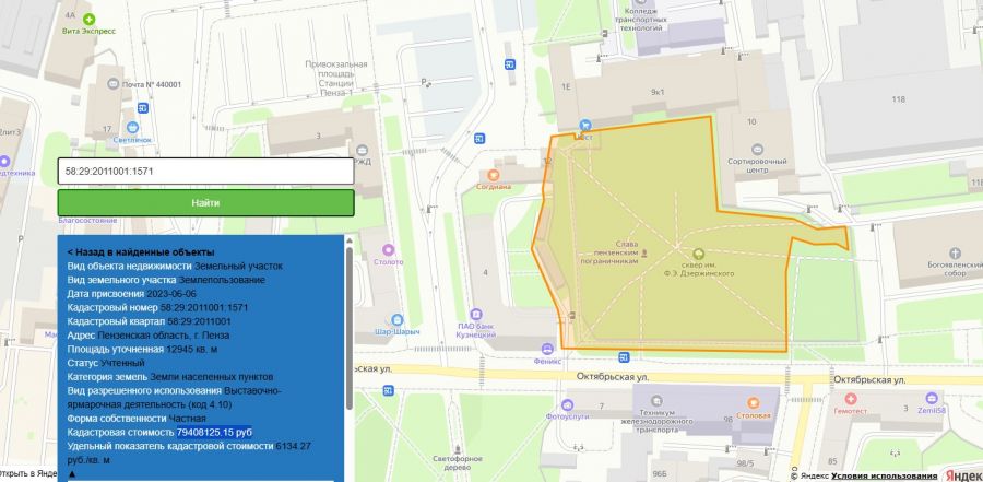 В каждой сделке фигурирует более 13 млн рублей. Хотя на сайте Росреестра в публичной кадастровой карте Пензы указано, что кадастровая стоимость участка напротив бывшего ДК железнодорожников (ныне – церковь) – 79 408 125,15 руб.