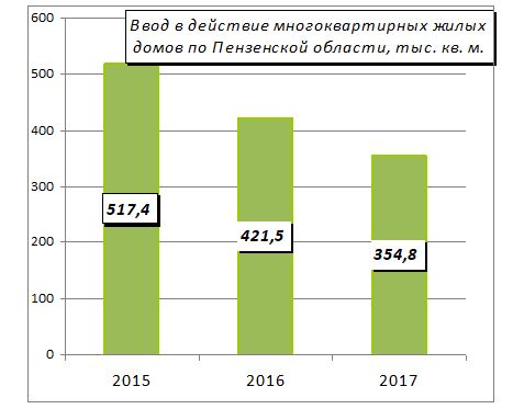 В 2016 году впервые с 2001 года отмечалось падение темпов ввода жилья МКД в Пензенской области на 18,5% по сравнению с аналогичным периодом прошлого года. В 2017 году падение продолжилось и составило еще минус 15,8%. И хотя, цифры за 2018 год анализировать сложно, так как для строительства показательны данные 9 месяцев и ежегодные, угрожающую отрицательную прогнозную динамику в минус 48,4% сложно не замечать.