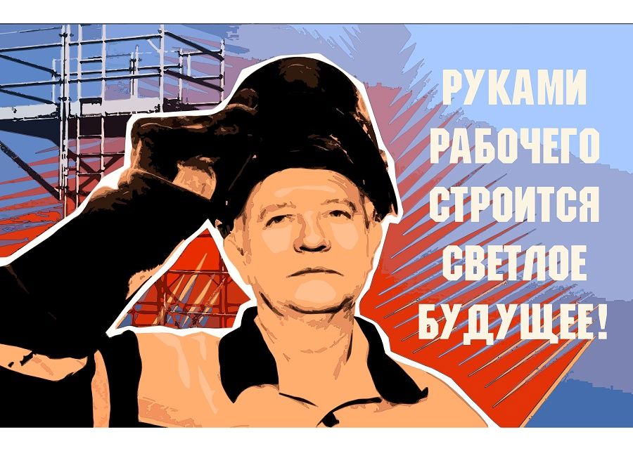 На третьем месте – агитплакат студентки Пензенского художественного училища им. К. А. Савицкого Арины Самойловой «Руками рабочего строится светлое будущее!». Он прославляет труд строителей.