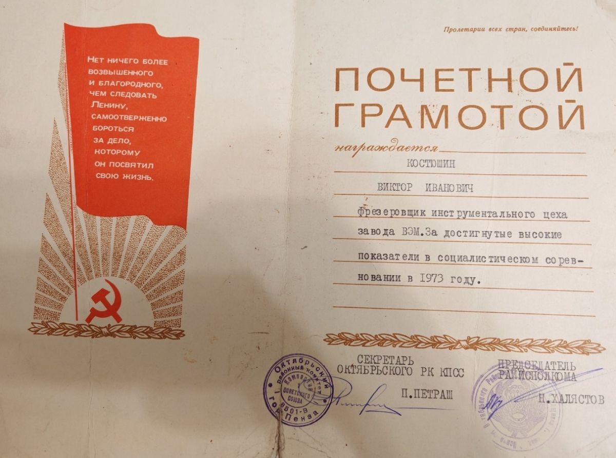 О своем отце в рамках спецпроекта РИА «ПензаСМИ» о людях труда рассказал его сын, активист, председатель АНО «Артефакт» Максим Костюшин.