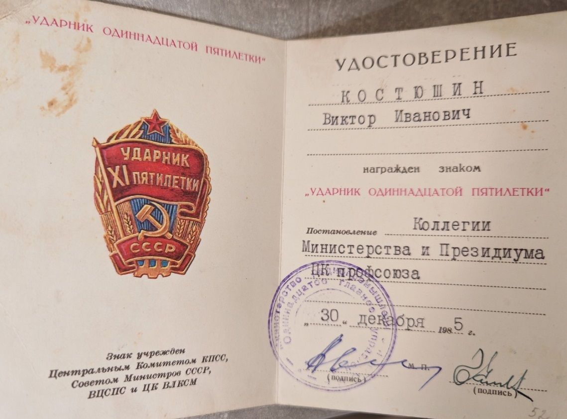 Дома сохранилось множество грамот и дипломов с благодарностью за ударный труд от руководства предприятия. Получил звание «Почетный ветеран завода», ветерана труда.