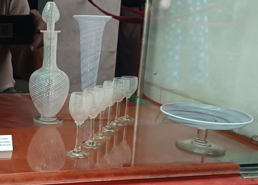 Среди экспонатов музея можно выделить те, что роднят их с итальянским искусством. Венецианским мастерам в течение XV-XVI веков не было равных в сложной обработке стекла. Секреты изготовления причудливых изделий, которые ценились наравне с драгоценностями, тщательно скрывались. Постепенно эти методы перенимали или заново открывали в других странах. В России венецианские техники с успехом освоили на Никольско-Бахметевском заводе в XVIII веке. В советские годы предприятие национализировали, переименовали в «Красный гигант», но традиции сохранили.