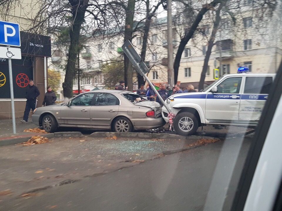 Фотографии с места событий в группе «Привет, сейчас, Пенза» социальной сети «ВКонтакте» опубликовала пользовательница Мария Маряк. На кадрах видно, что полицейский УАЗ-Патриот снес дорожный знак «Парковка для инвалидов» и врезался в Hyundai Sonata. Рядом с ними стоит изрядно помятый Chevrolet Aveo.