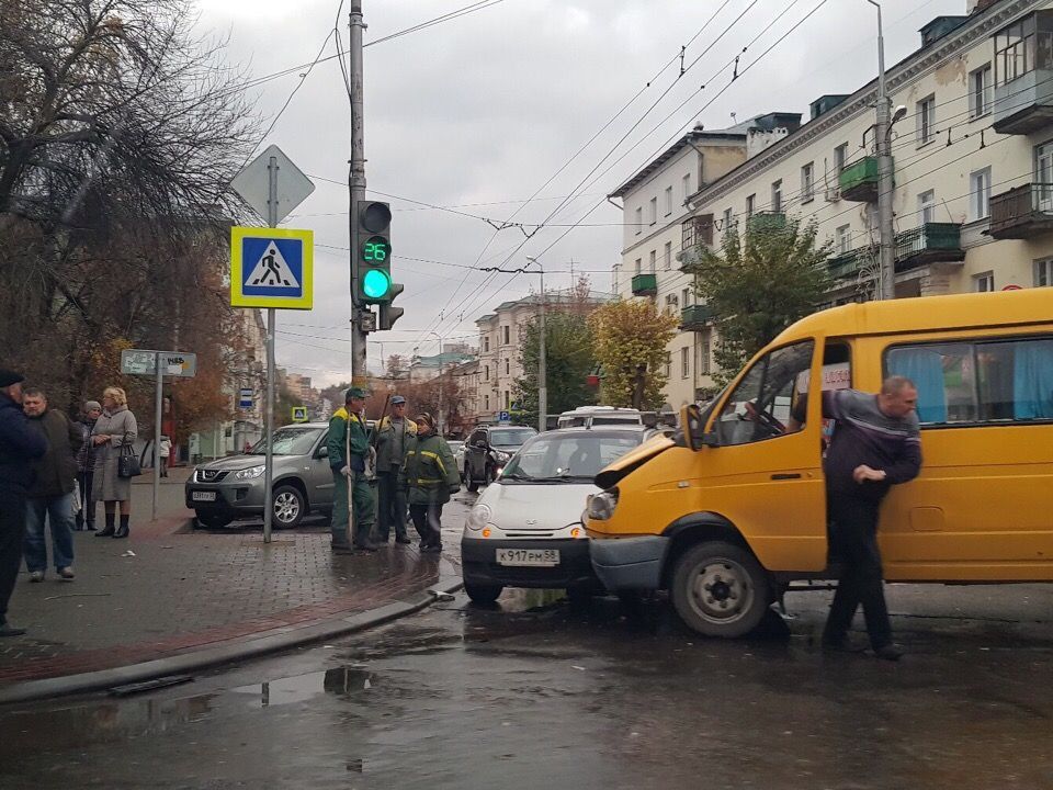 Чуть дальше, в зоне пешеходного перехода на улице Володарского, стоят ГАЗель и Daewoo Matiz. Информации о пострадавших нет, у отечественного автомобиля пострадал бампер и капот.