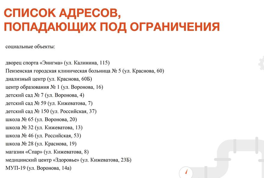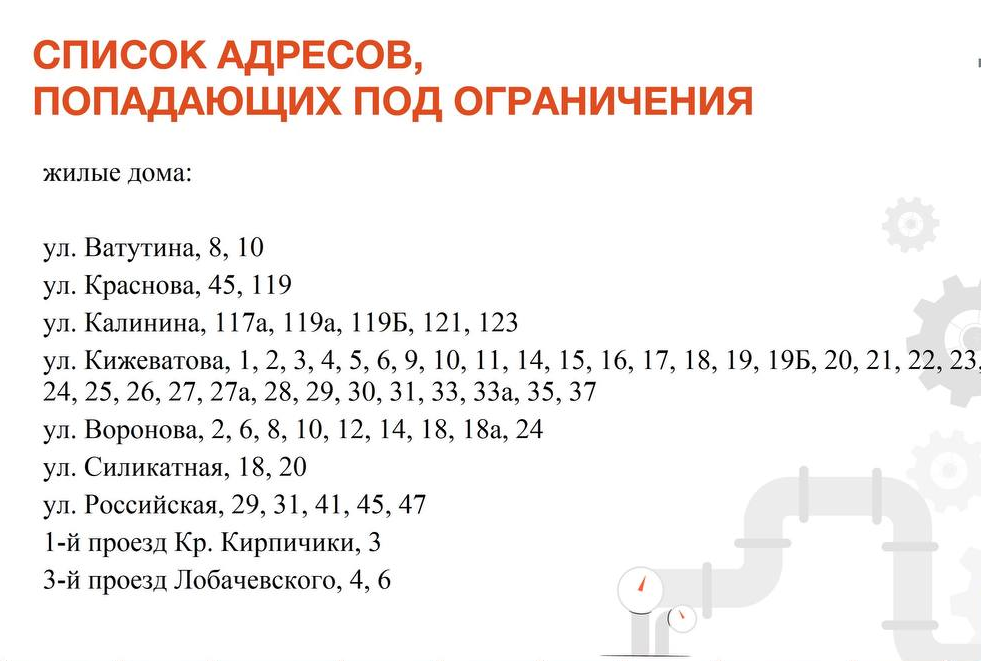 Горячее водоснабжение будет ограничено по следующим адресам: