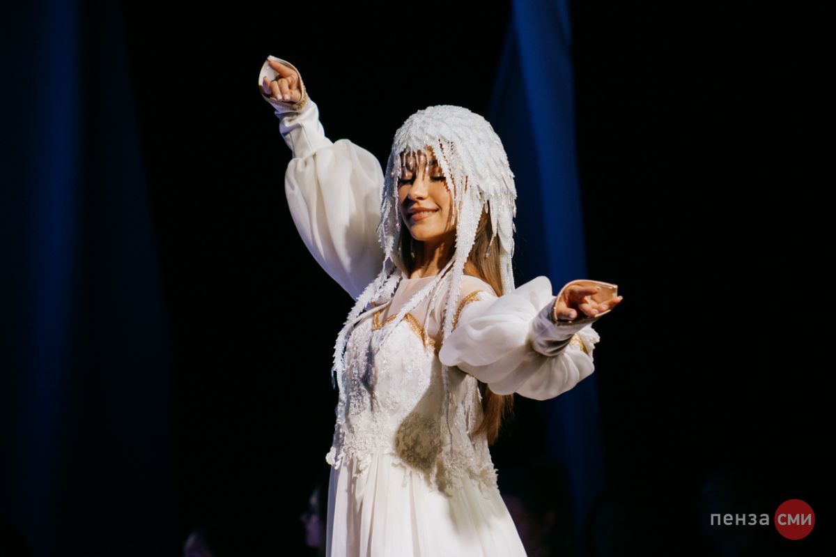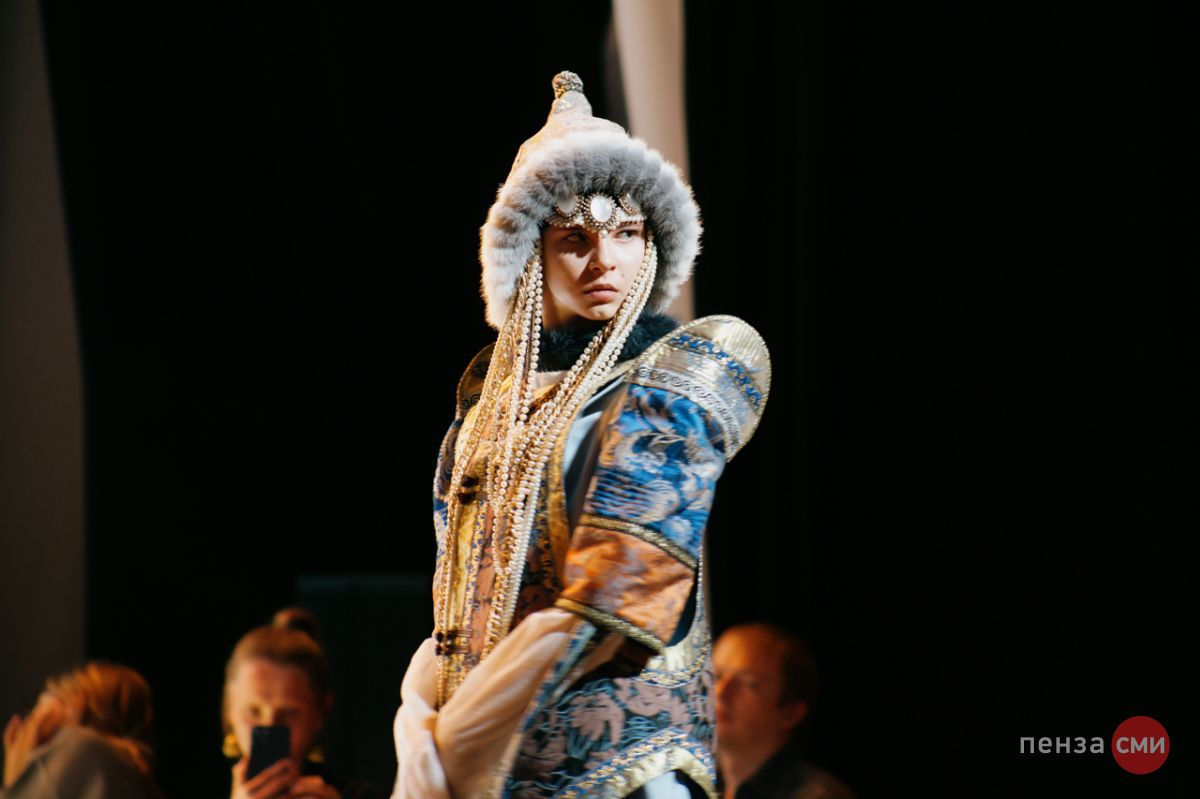 Театр моды Ольги Букиной открыл творческий сезон новым показом «Времени река». На большой сцене зрителям продемонстрировали несколько этнических коллекций, одна из которых представляет историческую ценность.