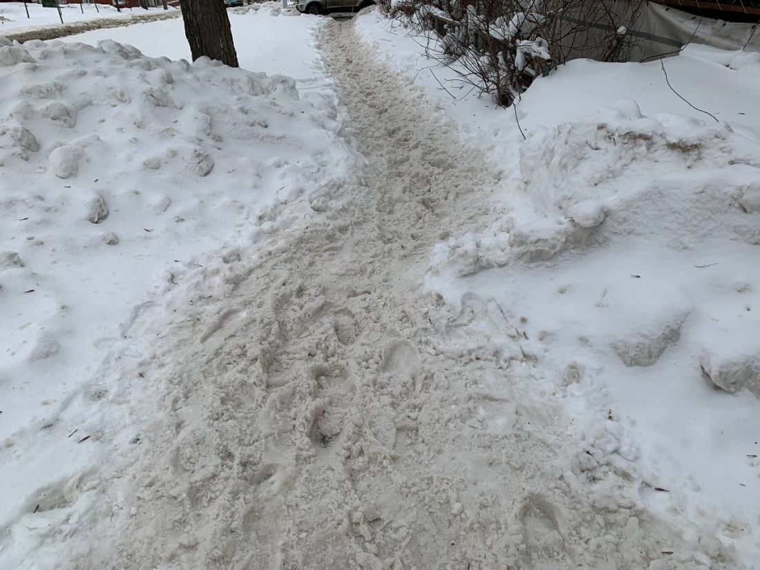 Пензячка просит очистить от снега подход к пешеходному мосту