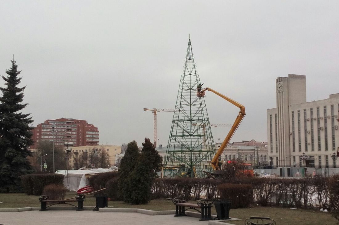 Тем временем на площади Ленина главная новогодняя елка города уже вытянулась в полный рост.