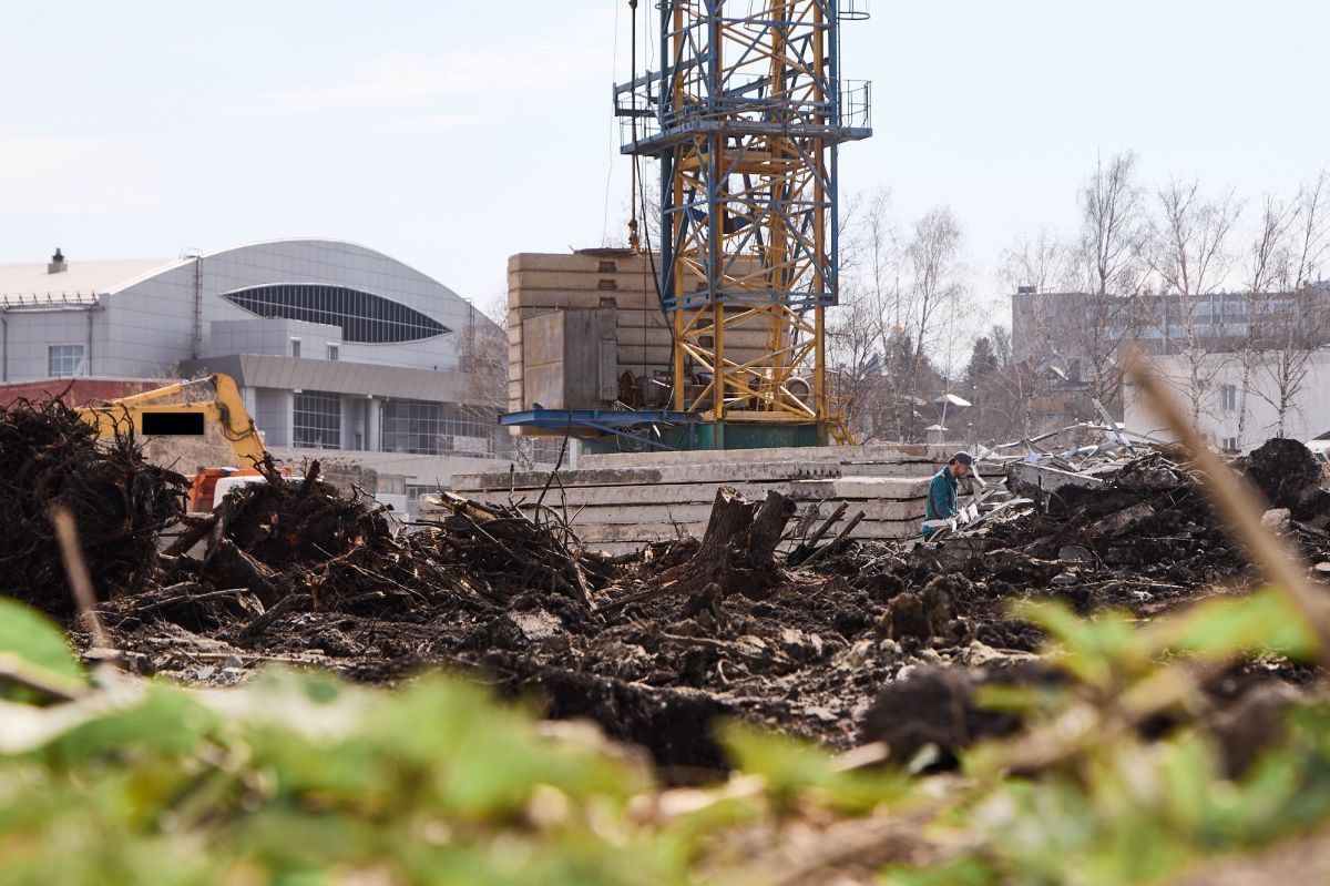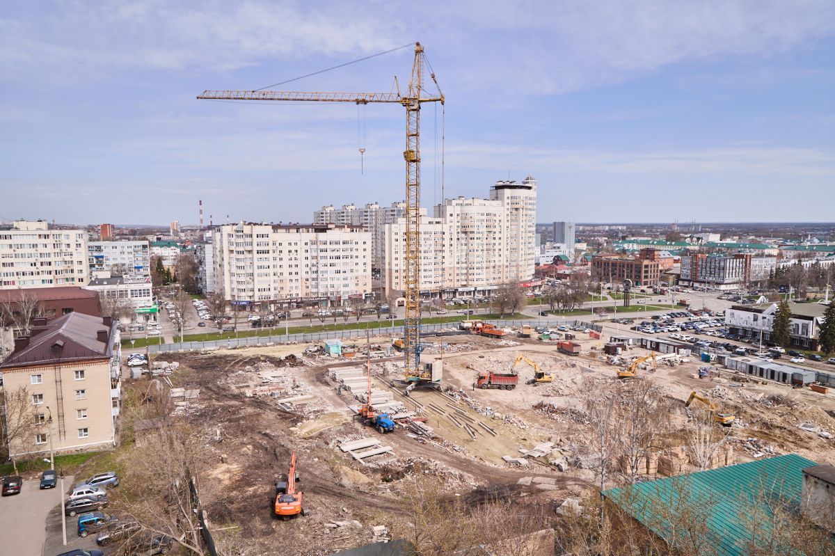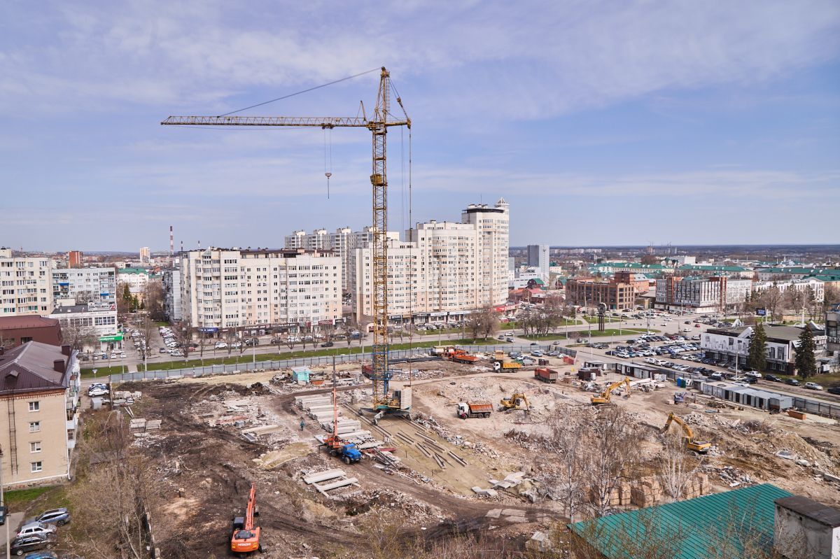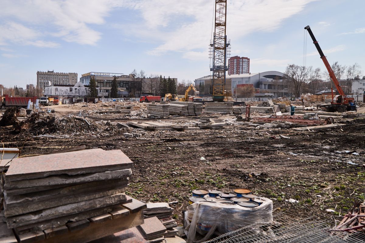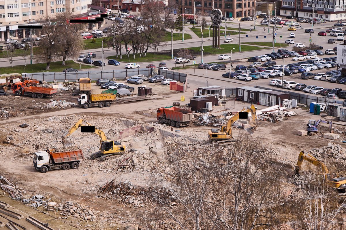 Фотограф Надежда Князева показала с необычного ракурса ул. Пушкина и стройплощадку на месте снесенной гостиницы «Интурист».