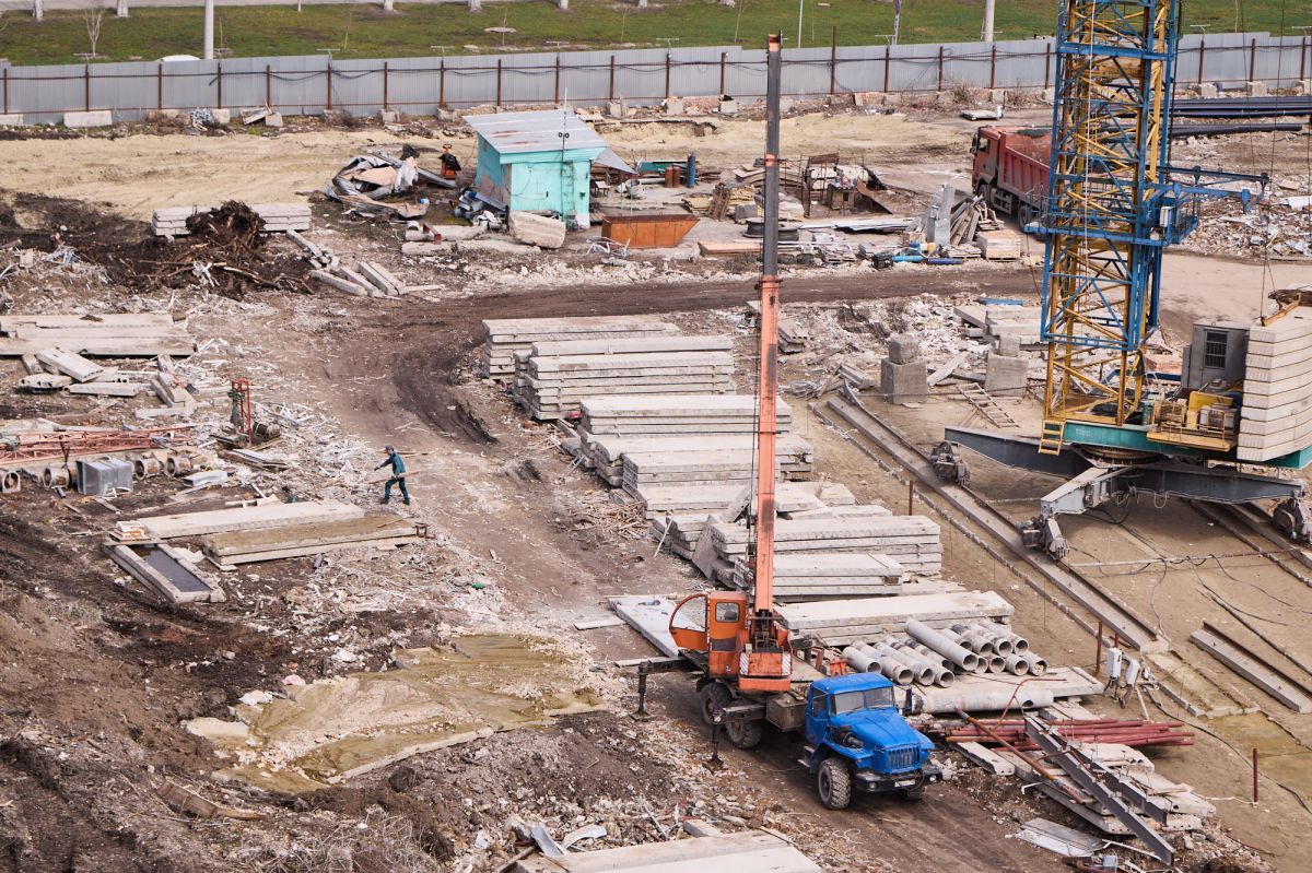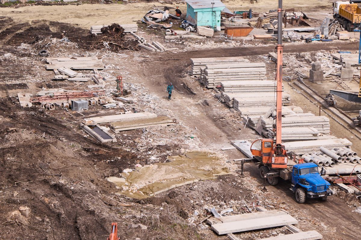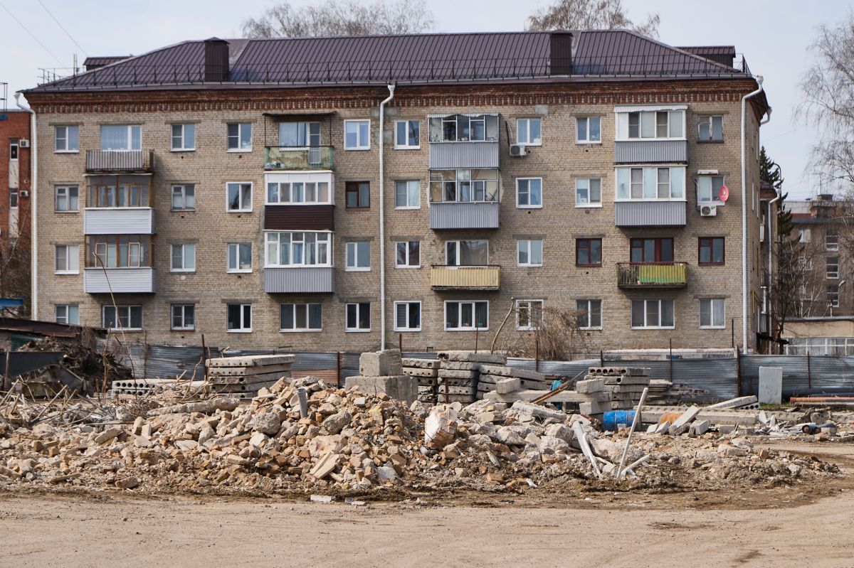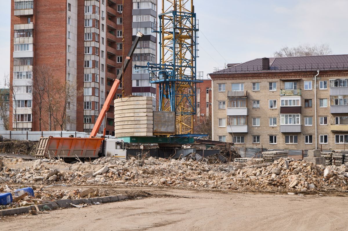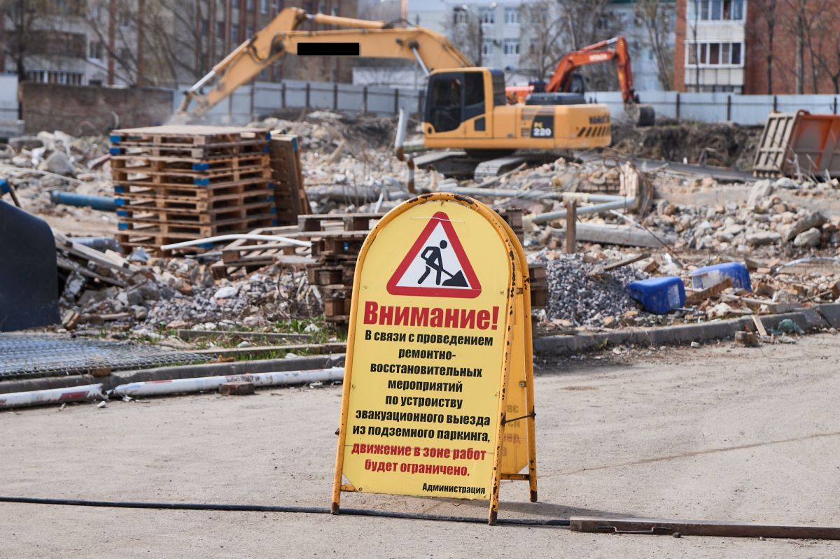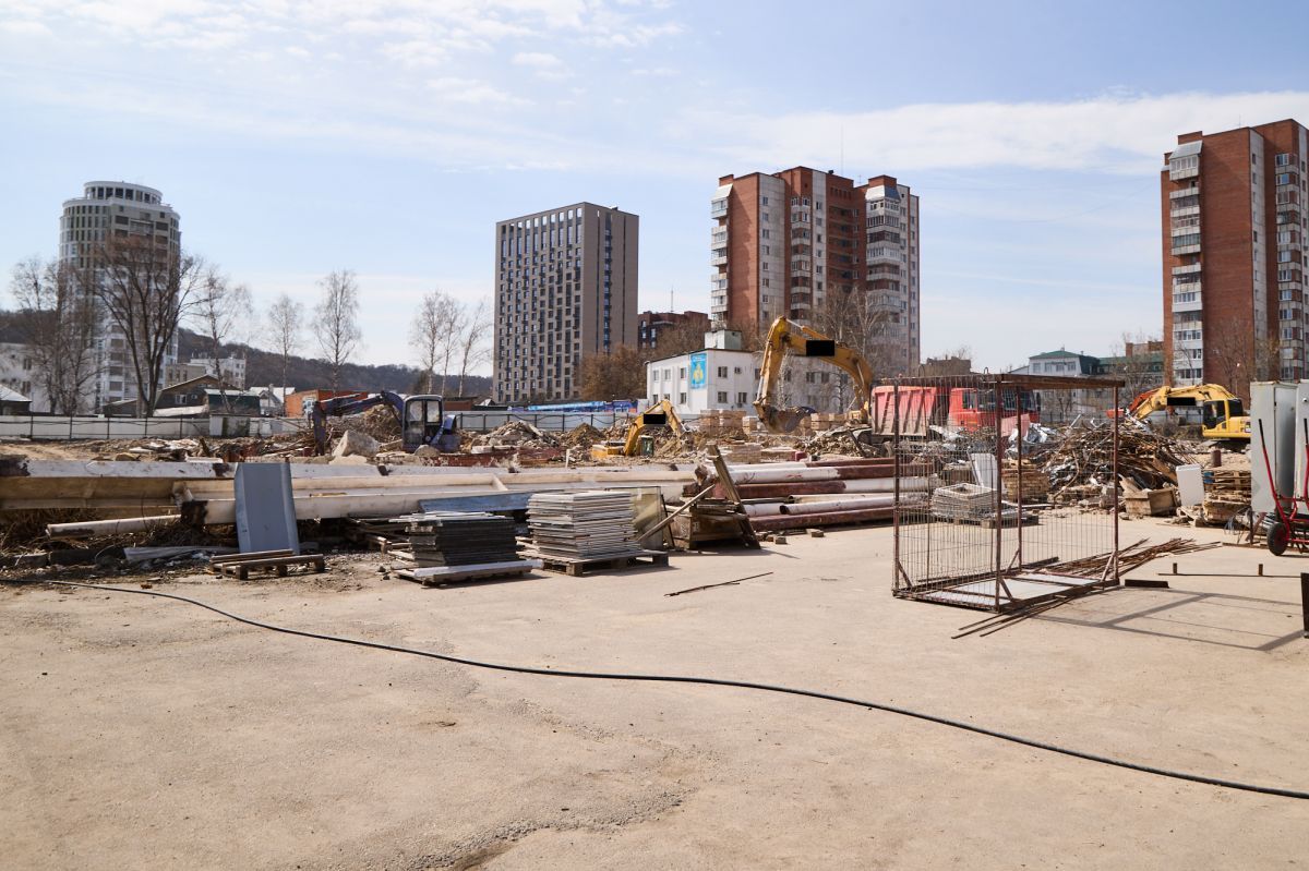 Фотограф Надежда Князева показала с необычного ракурса ул. Пушкина и стройплощадку на месте снесенной гостиницы «Интурист».