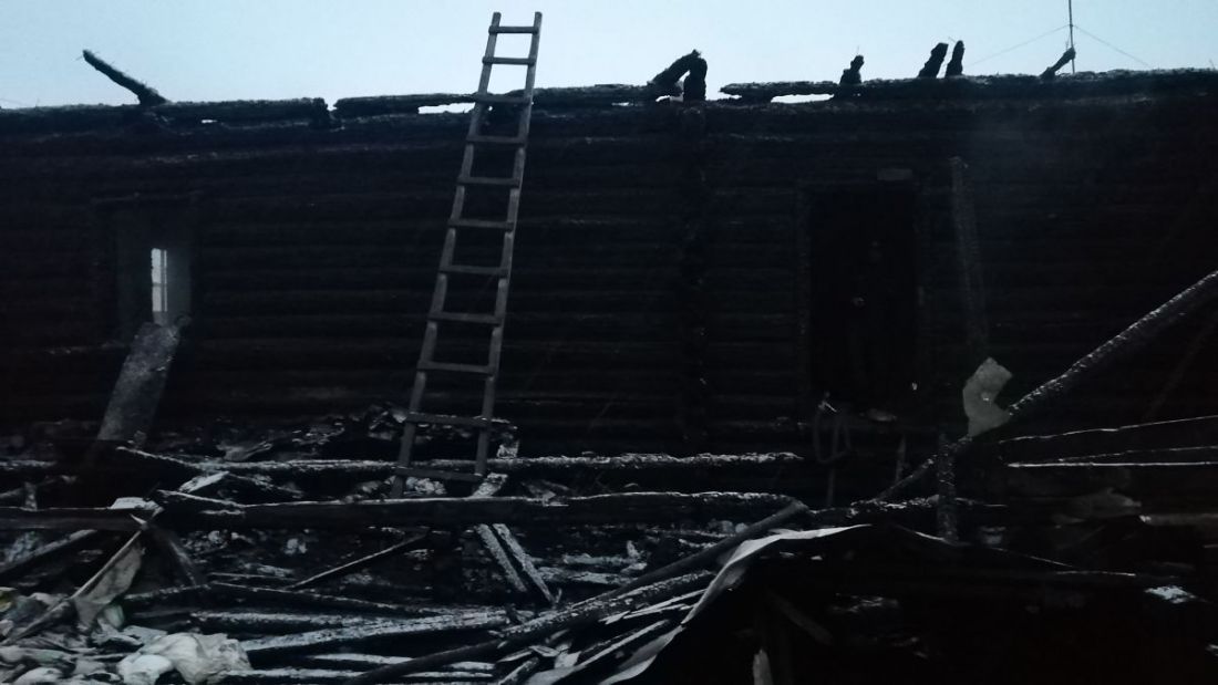 Камера сотрудников правоохранительных органов запечатлела еще дымящееся пепелище. Съемку вели внутри дома, и на кадрах записи видно, что в большинстве помещений огонь оставил лишь обугленные стены. Частично сохранилась только обстановка кухни. В результате пожара пламя практически полностью уничтожило крышу строения.