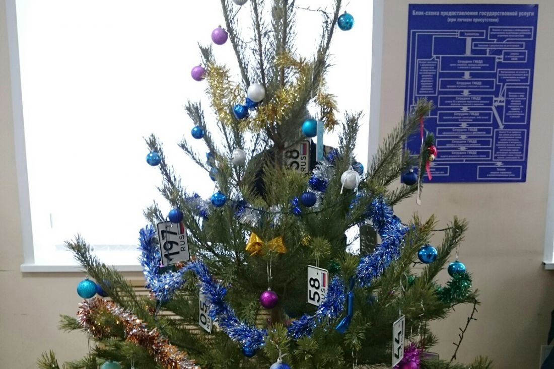 В пензенской Госавтоинспекции елку украсили автомобильными номерами