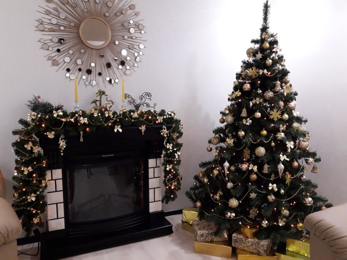 Не менее экстравагантная елка на фото у Елены Минченко, которая в комментарии написала, что облетает елочка через три недели, и каждый год они фотографируют скелет.