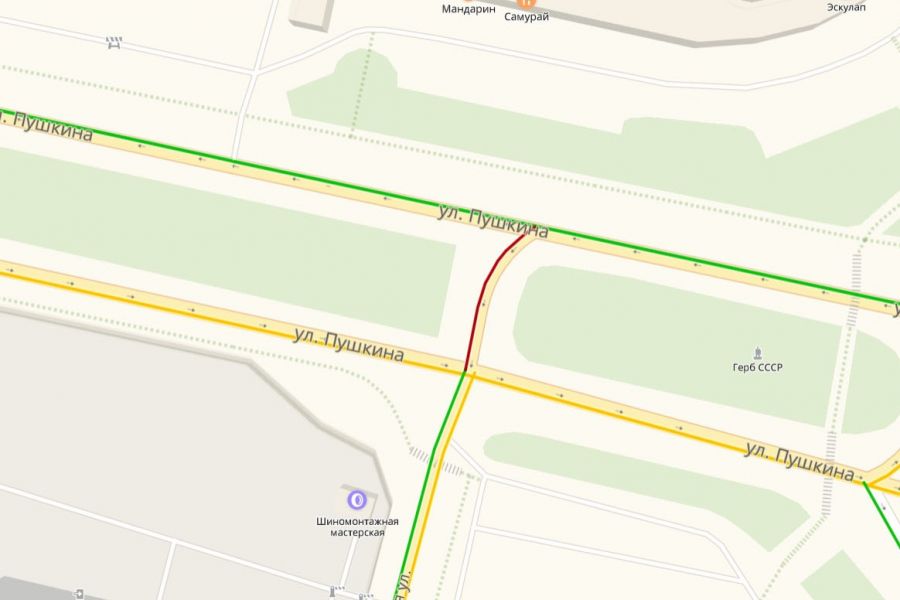 На небольшом участке улицы Пушкина образовался затор.