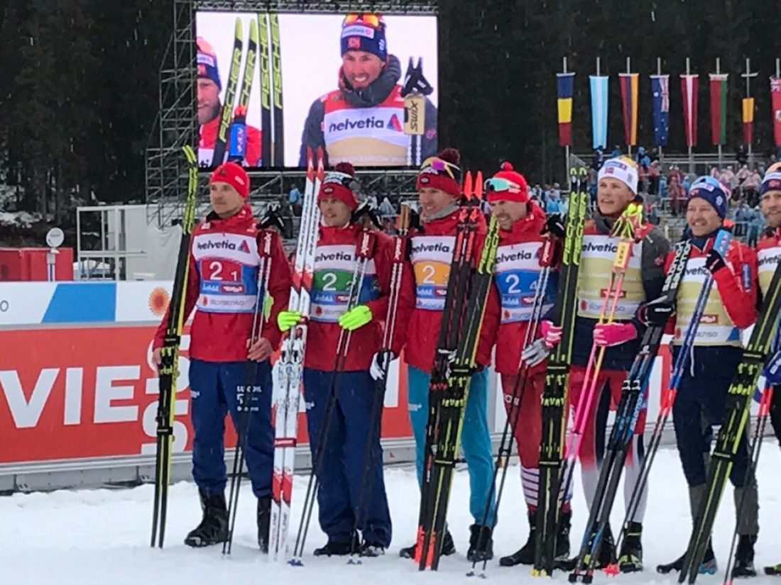 Сборная России, в составе Андрея Ларькова, Александра Бессмертных, Сергея Устюгова и студента Пензенского государственного университета Александра Большунова, вышла на старт гонки четыре по десять километров. Наши парни до последнего этапа шли в одни ноги со сборной Норвегии, однако на последнем отрезке дистанции Сергей Устюгов начал откровенно проваливаться относительно Йоханнеса Клебо. Как результат, второе место с 38,8 секунды отставания. Замкнули тройку французы, отставшие от лидера на одну минуту.