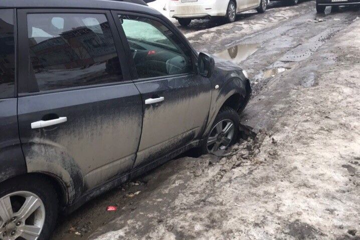 В среду, шестого марта, в Пензе на улице Пушкина водитель автомобиля Subaru Forester вступил в неравный бой с дорожным покрытием и потерпел сокрушительное поражение. Под передними колесами японского внедорожника провалился асфальт.