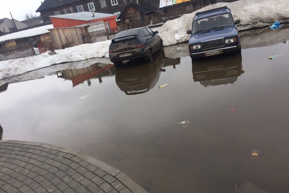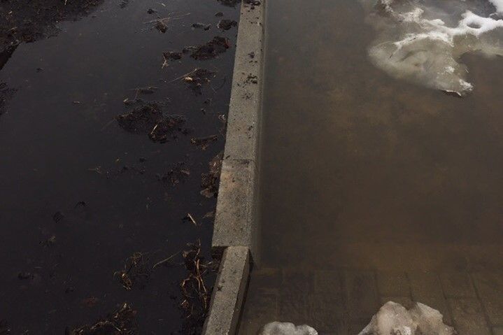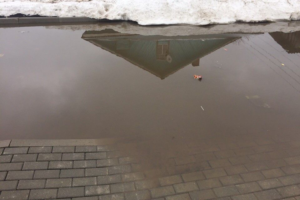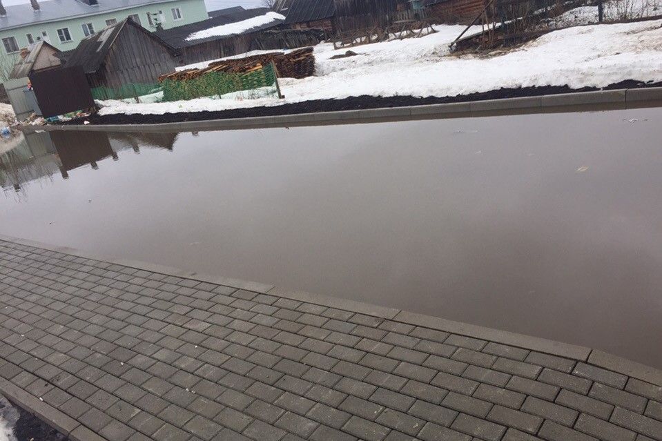 В группе «Подслушано в Никольске» социальной сети «ВКонтакте» опубликован пост возмущенного жителя улицы Беляева. Он запечатлел на камеру разлившееся озеро из тающего снега, которое покрыло часть тротуара и парковку около нового дома.
