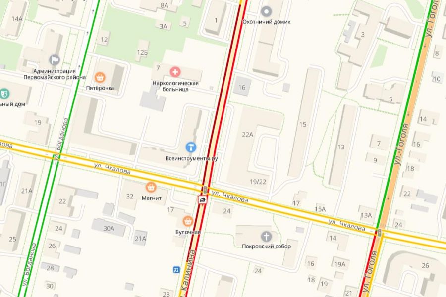 Судя по данным «Яндекс.Карт», затор в сторону улицы Свердлова тянется от кинотеатра «Октябрь», скорость движения не превышает десяти километров в час, ближе к месту происшествия снижаясь до пяти километров в час. На повороте с улицы Лермонтова автомобили также практически стоят. Проехать в сторону центра весьма проблематично.