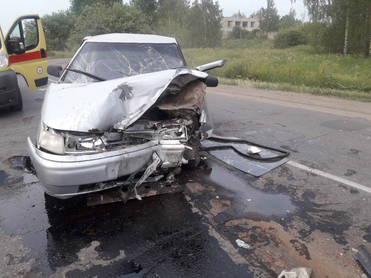 У «десятки» серьезно деформирована передняя часть с водительской стороны. На фотографии также запечатлен реанимобиль – судя по всему, участники ДТП получили серьезные травмы.