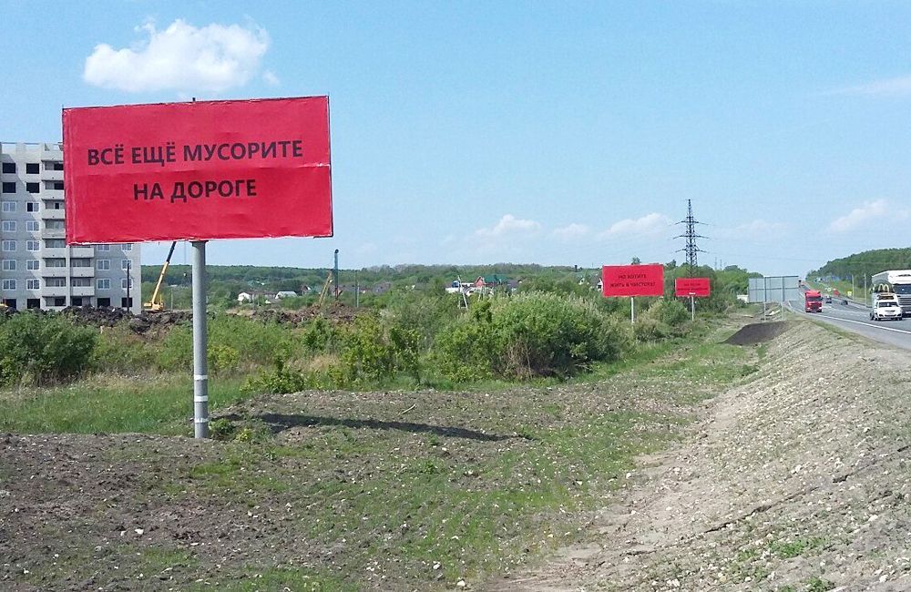 В группе «Типичная Пенза» одна из жительниц областного центра опубликовала фотографии трех баннеров, которые размещены на выезде из города со стороны микрорайона Арбеково. На трех билбордах черным по красному написан текст, призывающий водителей не мусорить на дороге.