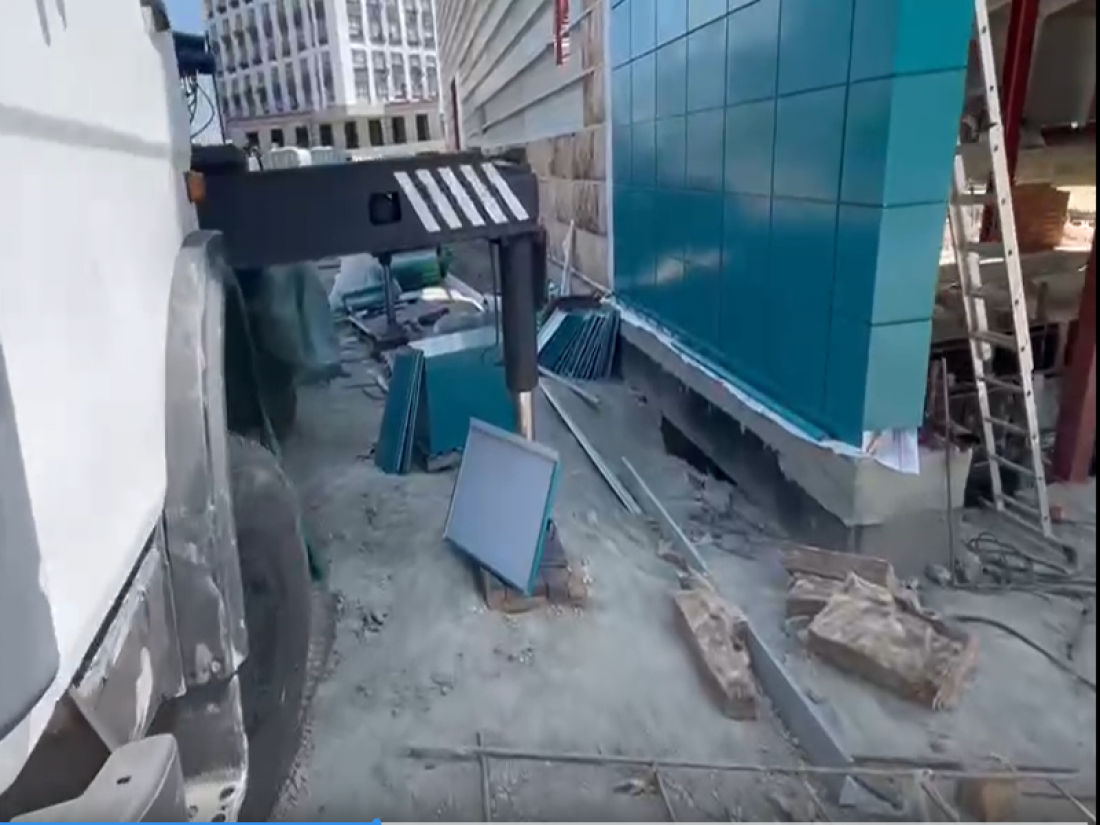 Он добавил, что подрядчики приступили к работе по конечной облицовке спортивного сооружения, прикрепив видео.