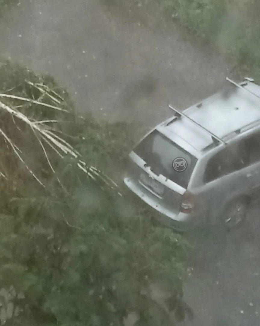 Похожий инцидент произошел на улице Карпинского. Дерево упало буквально в сантиметрах от автомобиля.