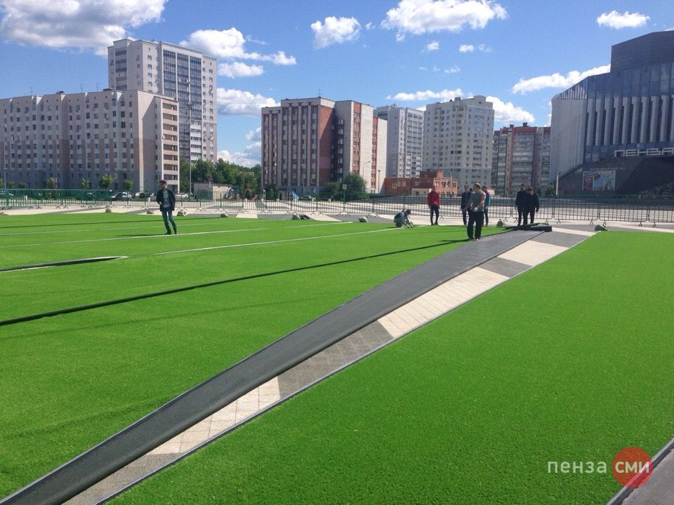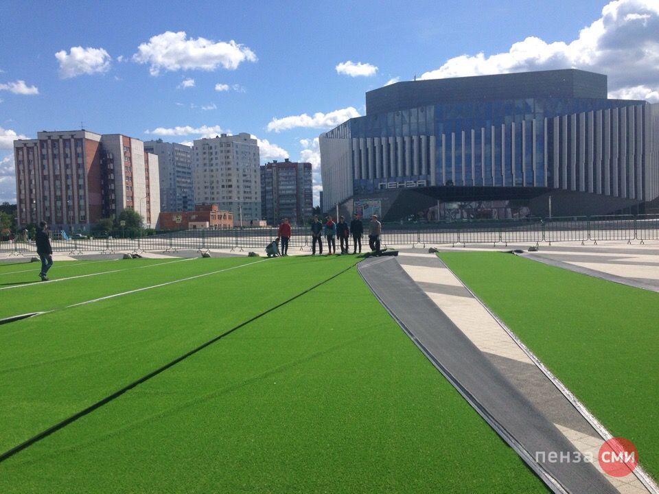 На Юбилейной площади в Пензе постелили футбольный газон