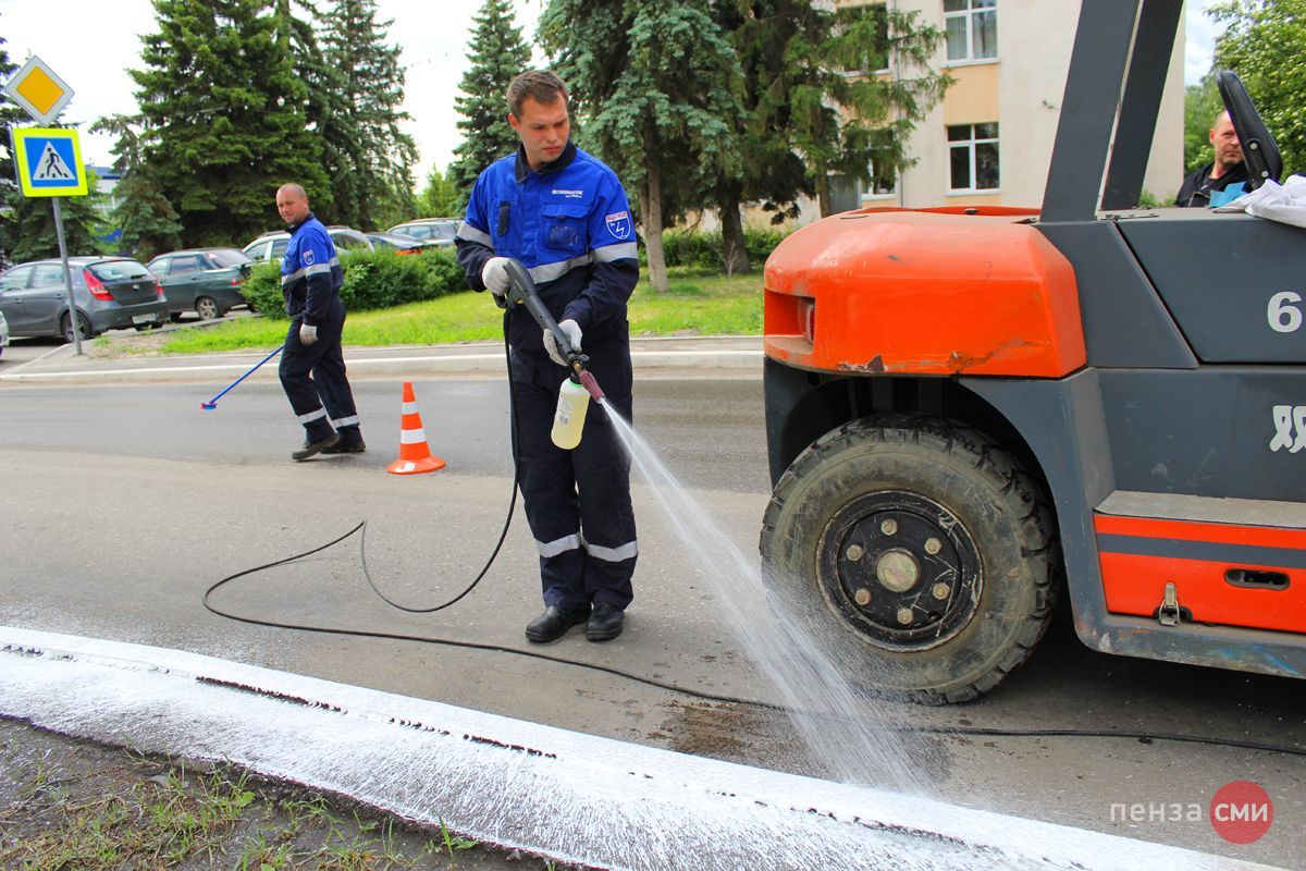 Утром девятого июня работники компании «СтанкоМашСтрой» приводили в порядок территорию возле своего предприятия. Казалось бы, обычное явление в преддверии Дня России и города, если бы не инновационный для Пензы метод уборки. Руководством компании было принято решение использовать для чистки бордюров специальное средство и мойку высокого давления, чтобы ускорить процесс работы и добиться лучших результатов.
