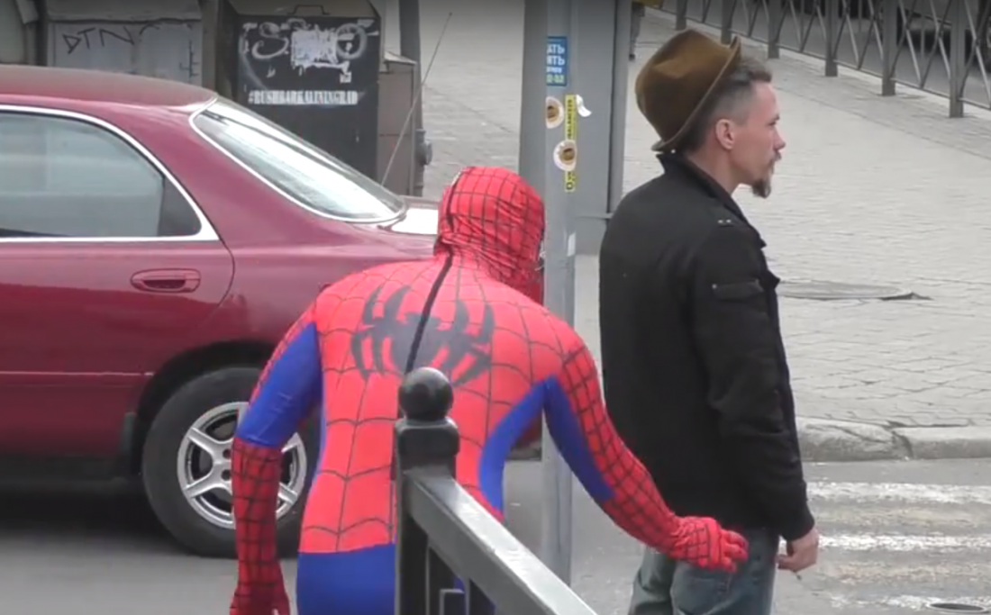 Необычное видео появилось в группе «Очень важный Калининград» социальной сети «Вконтакте». На кадрах мужчина разгуливает по городу в костюме человека-паука. Супергерой незаметно подкрадывается к курящим горожанам, неожиданно выхватывает из их рук сигареты и выбрасывает. В описании к посту автор указал, что таким способом местный герой борется с курящими на горордских улицах.