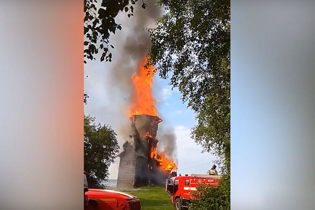 Напомним, что церковь XVIII века огонь охватил утром в пятницу, 10 августа. Полностью деревянное строение, являющееся памятником федерального значения, сгорело дотла.