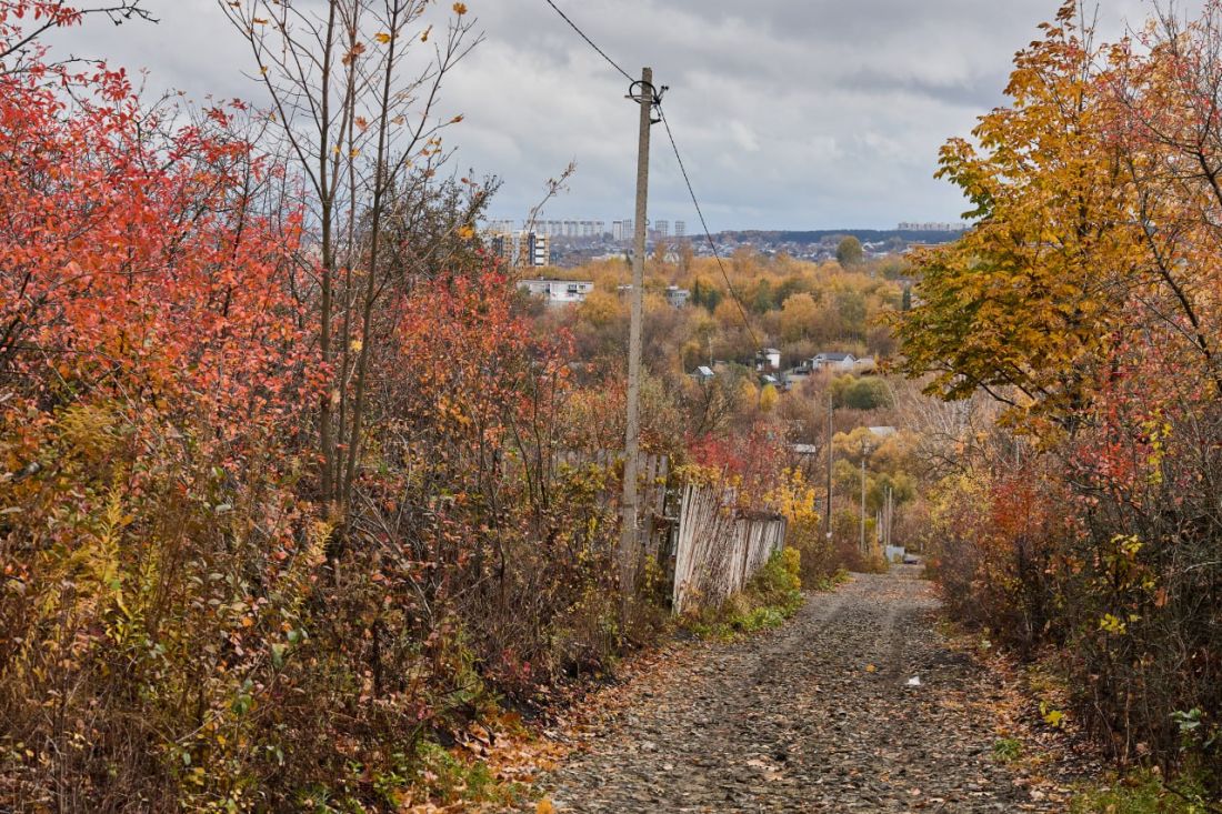 Мусор разбросан по дороге и двору.